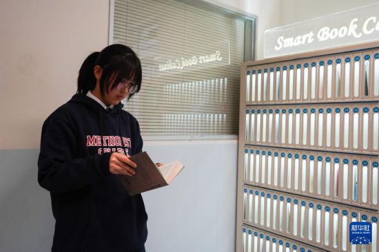 循道中学初二学生谢羽琪在阅读从智能漂书机取出的图书(1月22日摄)。新华社发(龙镜伊 摄)