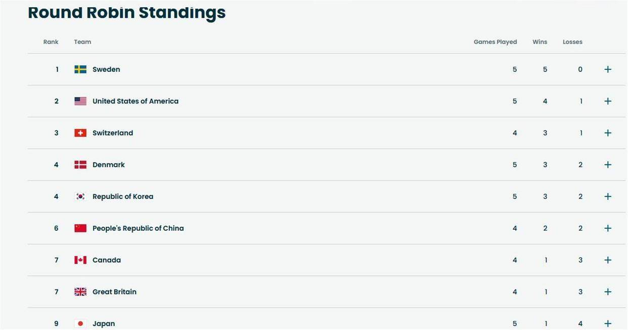 第四局,中国队后手。 过程有点小波折,倒数第二投力量没控制好,但好在王芮的最后一投稳住了局面,再添1分。 3比1。